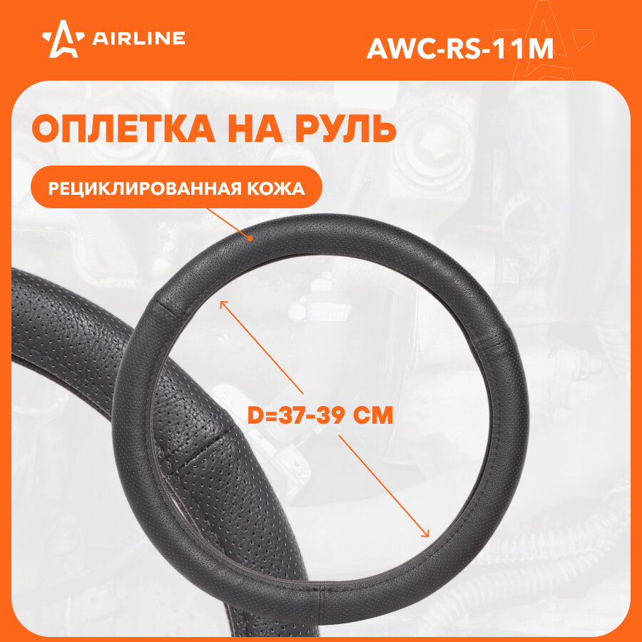 AIRLINE AWC-RS-11M (AWCRS11M) оплетка на руль перфорированная кожа, черная, 37-39 см / м 37-39 см / м\