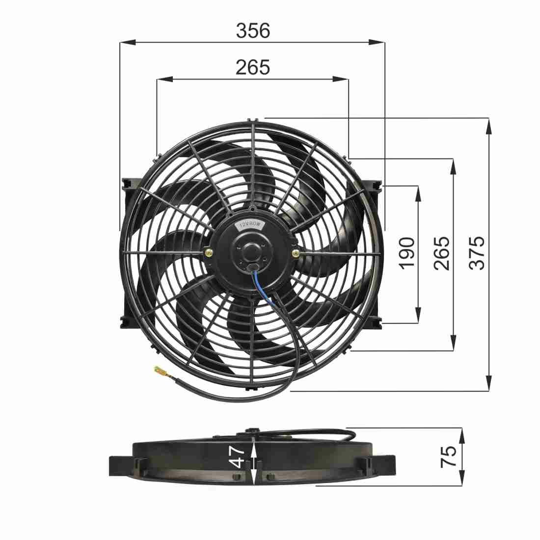 Электровентилятор радиатора Ø356 80 W (14″, загнутые лопасти) belais #18063 информация:
