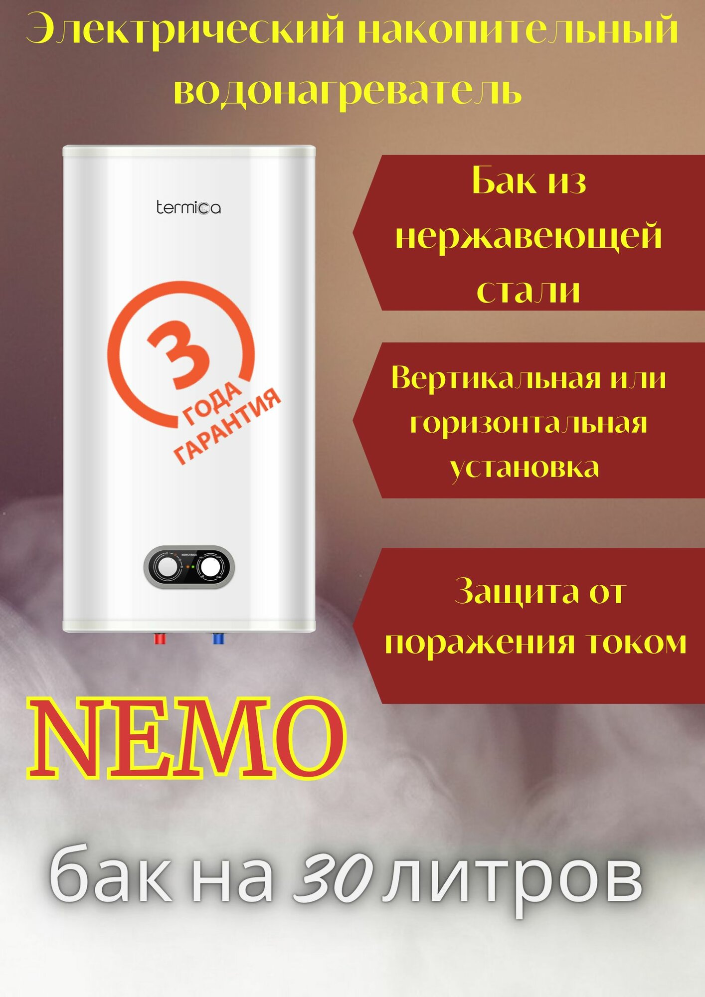 Водонагреватель накопительный электрический Termica NEMO 30 INOX , белый информация: