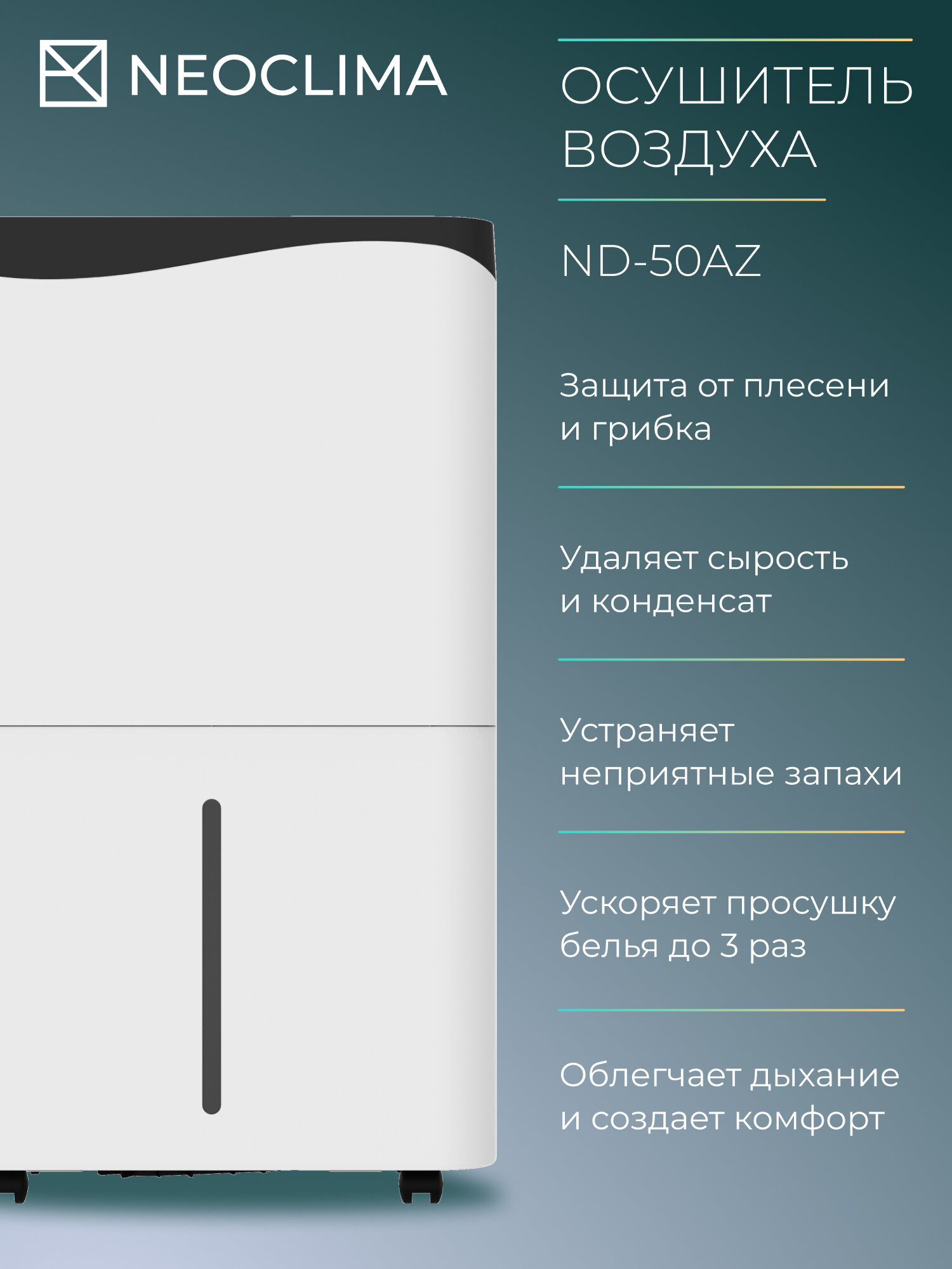 Осушитель воздуха для дома бытовой NEOCLIMA ND-50AZ, 50 л/сутки информация: