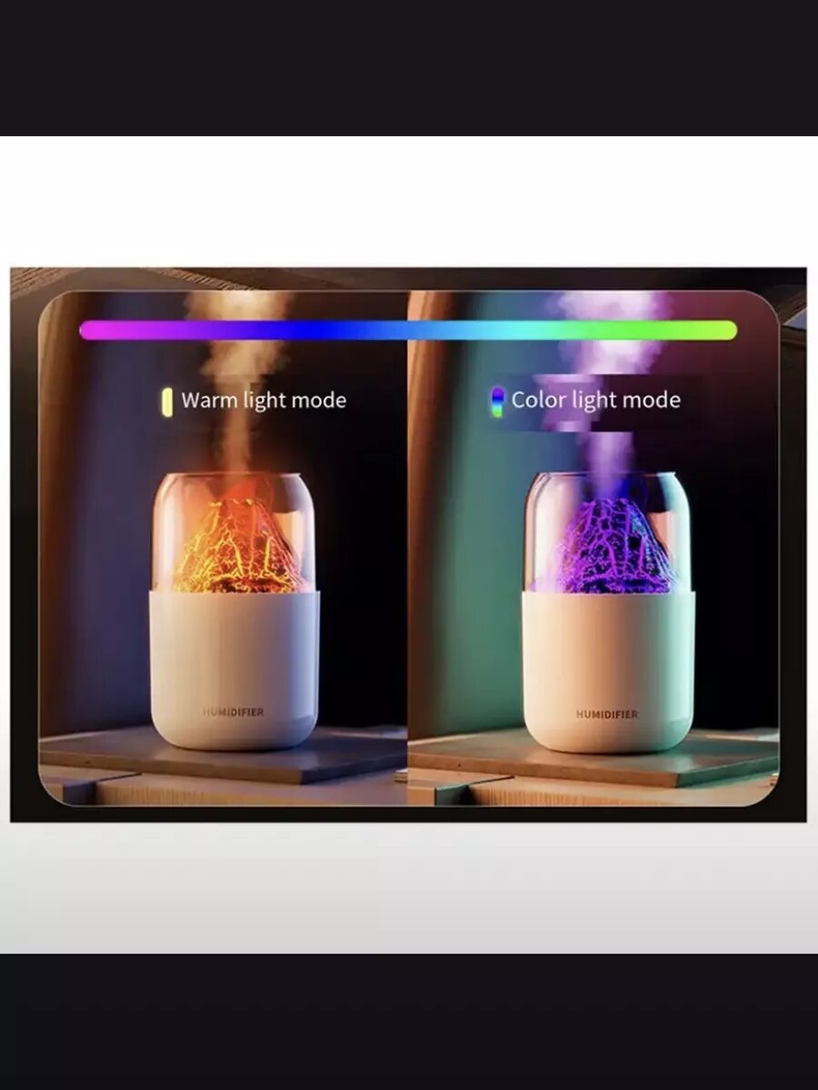 Увлажнитель воздуха и аромадиффузор с подсветкой для дома, ночник с эффектом пламяни