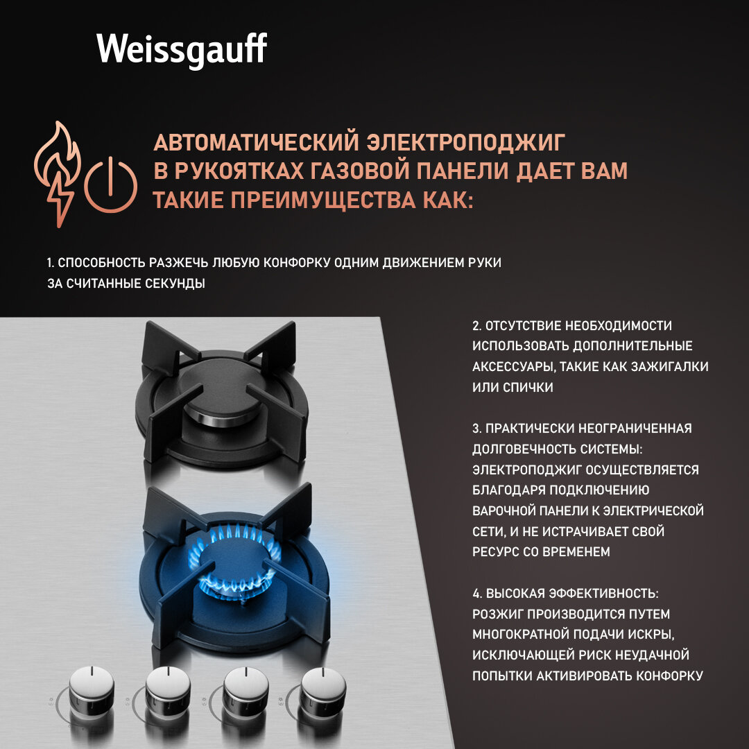 Варочная панель Weissgauff HG 453 BGV, Рукоятки Hi-Tech, Автоматический электроподжиг