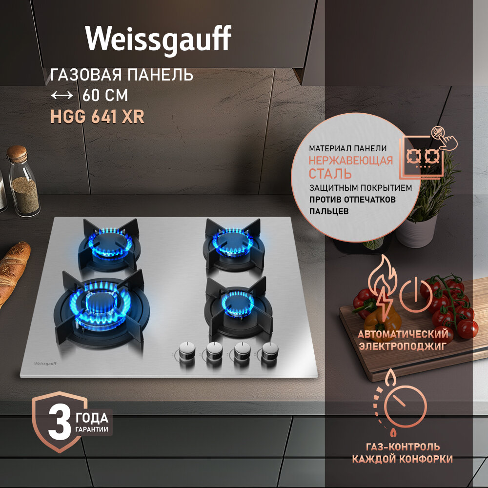 Встраиваемая газовая варочная панель Weissgauff HGG 641 XR 35 882 ₽
