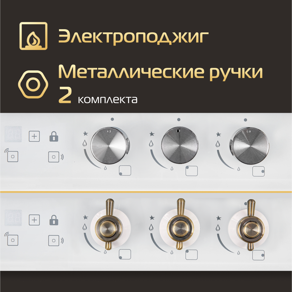 Газовая варочная поверхность HIBERG VM 3022 RY, 2 конфорки, электророзжиг, газ-контроль, бежевый ретро