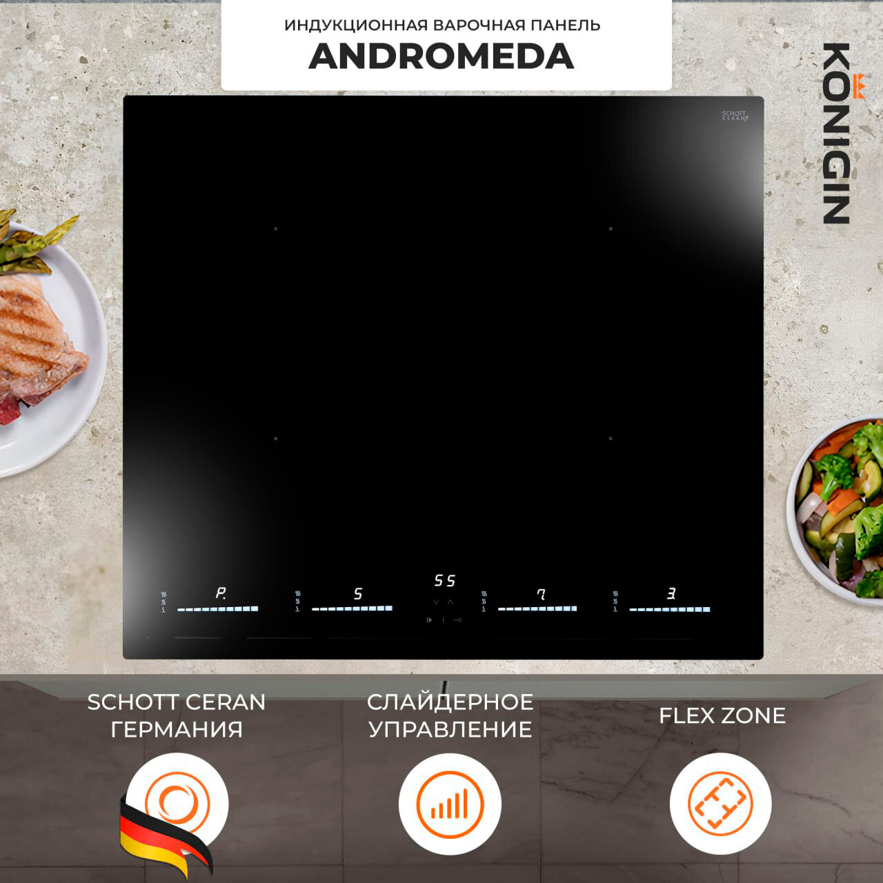 Индукционная поверхность Konigin Andromeda I604 SB2BK, 60 см, управление сенсорый слайдер, черный, Турция 39 810 ₽