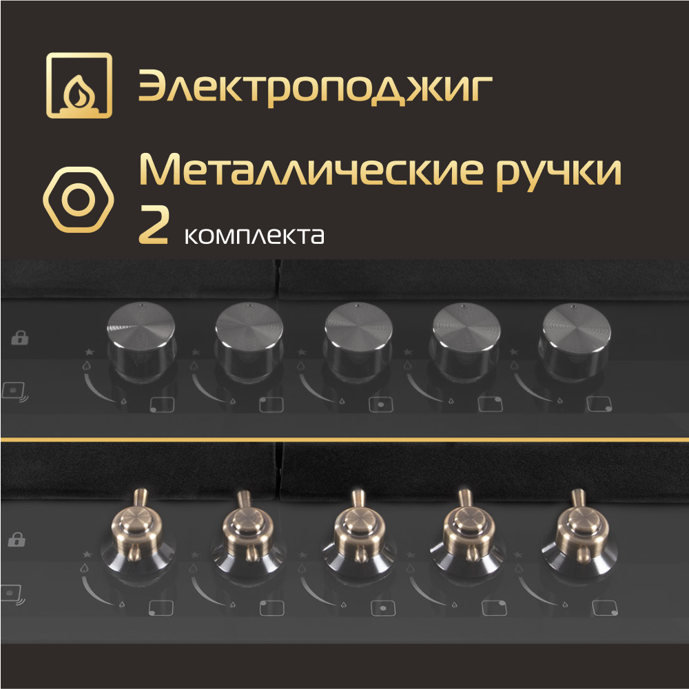 Газовая варочная поверхность HIBERG VM 7155 Y, 5 конфорок, таймер отключения газа всех конфорок, газ-контроль, электроподжиг, чугунные решетки. 46 750 ₽