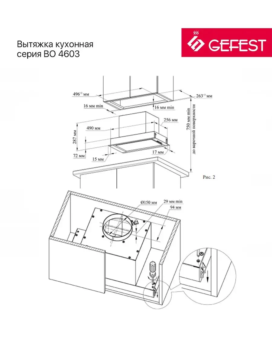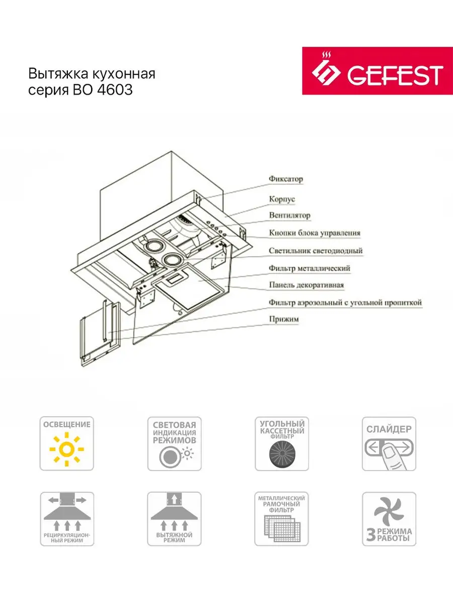 встраиваемая вытяжка GEFEST ВО-4603 информация: