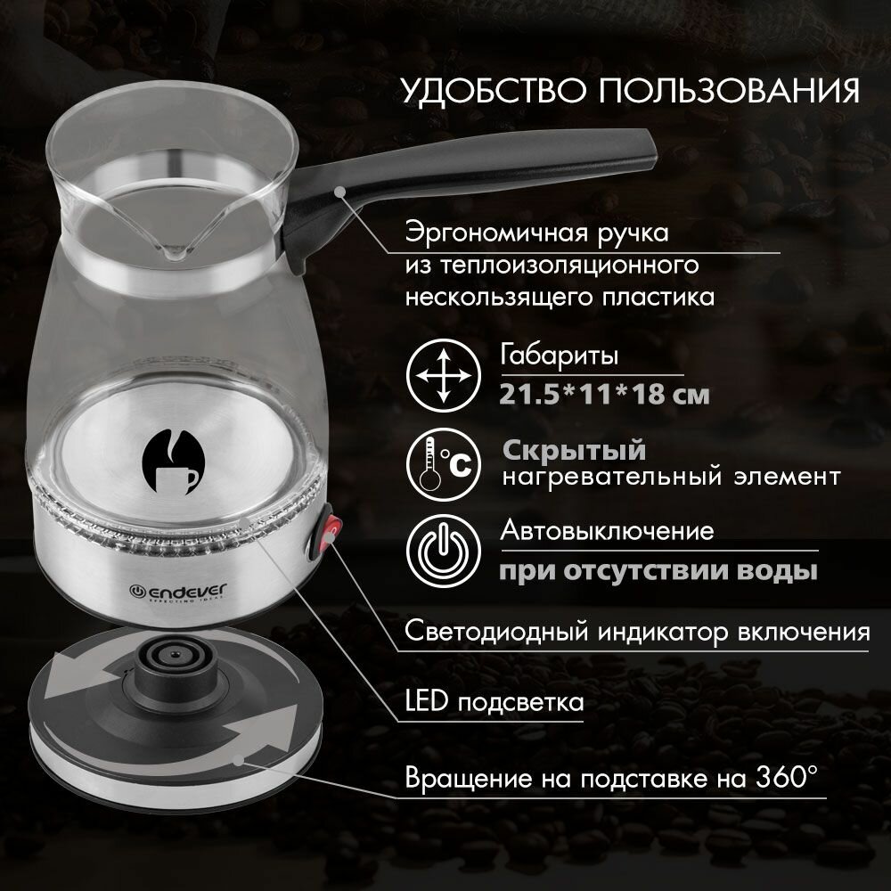 10 цен на Кофеварка электрическая / турка для кофе Endever Costa-1015, 600 Вт, защита от перегрева