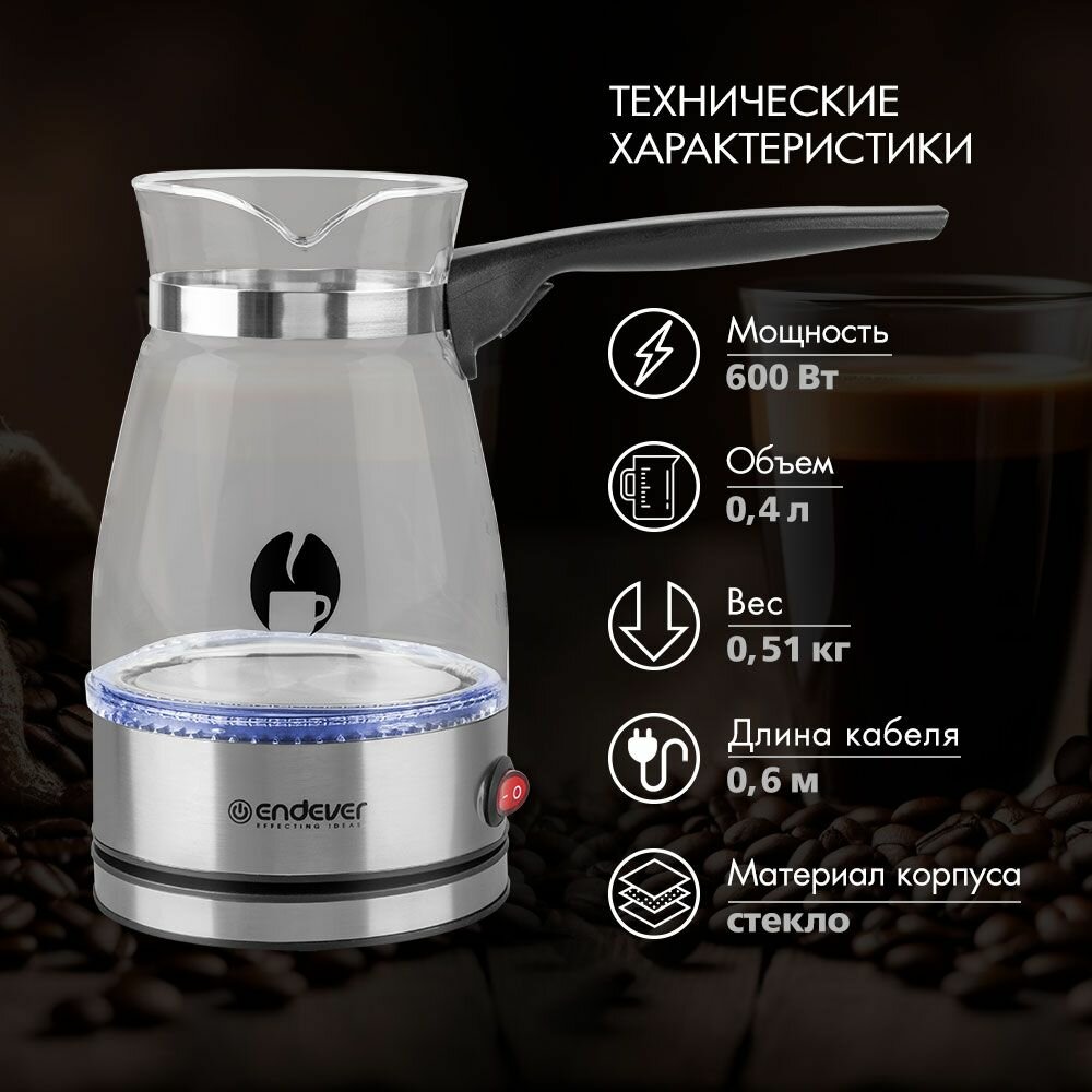 Кофеварка электрическая / турка для кофе Endever Costa-1015, 600 Вт, защита от перегрева информация:
