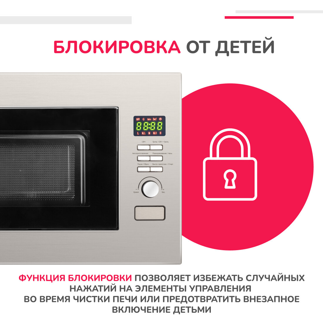Встраиваемая микроволновая печь Simfer MD2714, 22 литра, 700 Вт, нержавеющая сталь информация:
