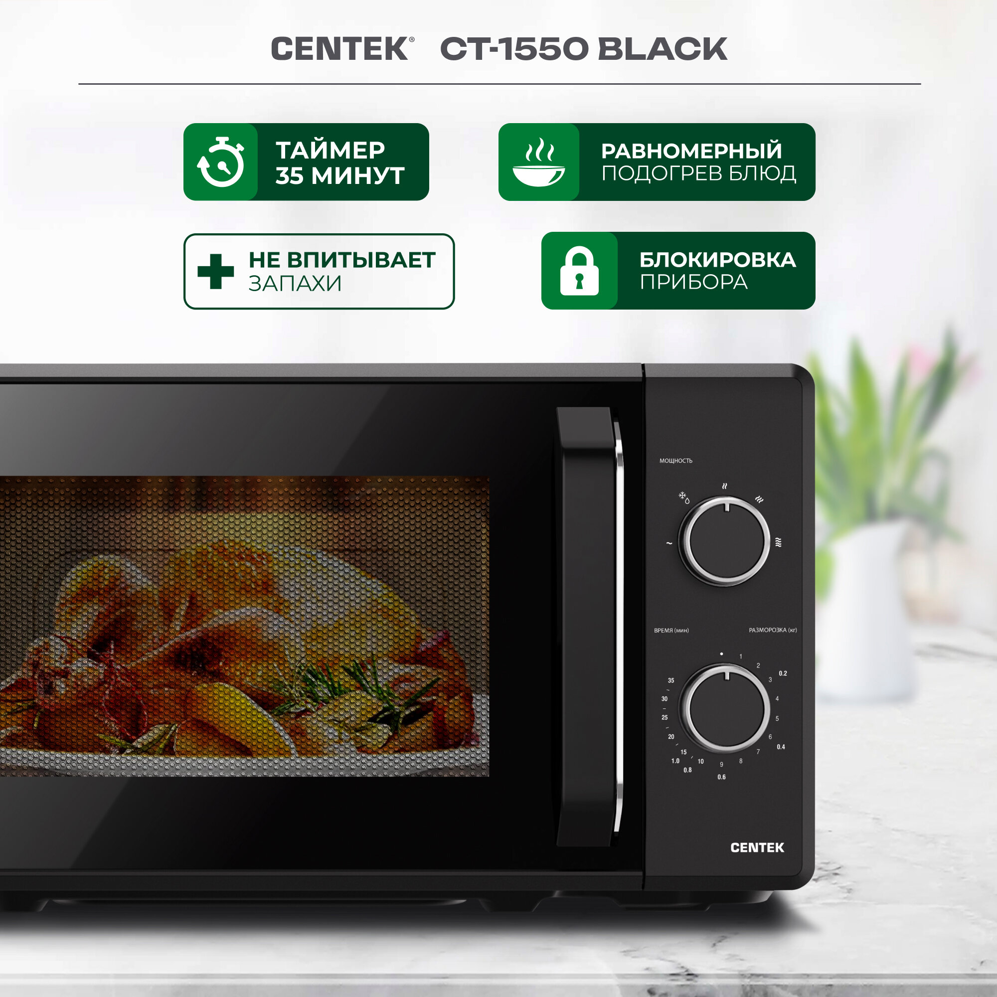 Отзывы на Микроволновая печь CENTEK CT-1550 Black: 700Вт, 20л, 5 уровней мощности/микроволновка СВЧ
