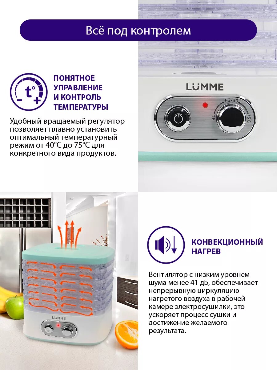 LUMME LFD-105 1B PP 6 поддонов: 5+1 для ягод светлая яшма сушилка д/фруктов, овощей