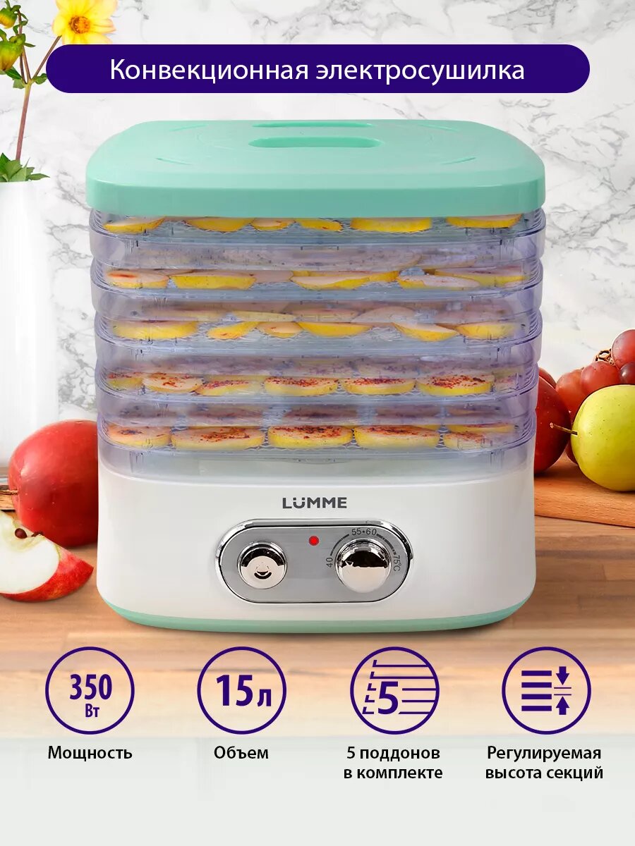 Дегидратор сушилка для овощей электросушилка LUMME LU-1853 5 поддонов белый/светлая яшма 1 679 ₽