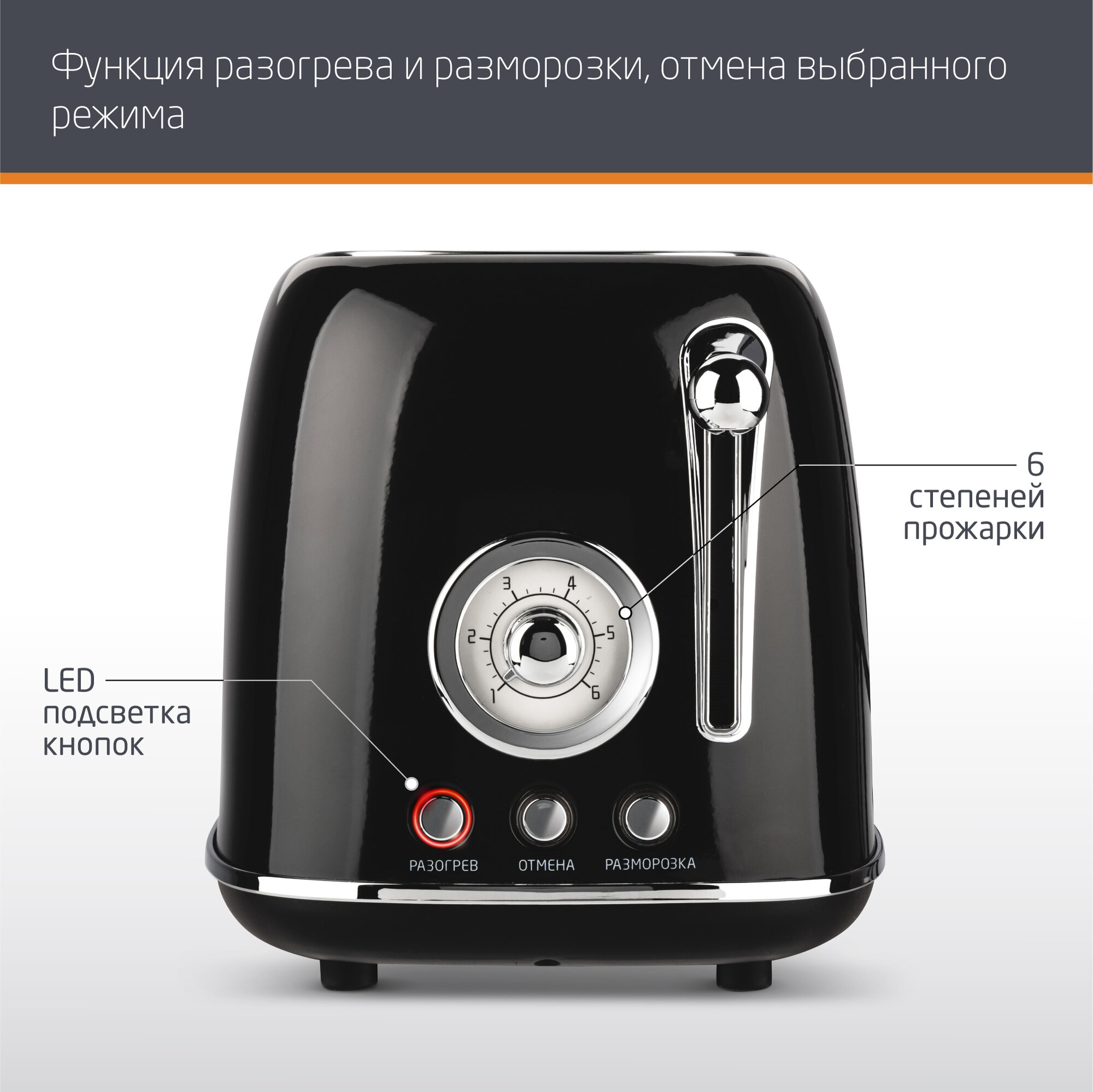 | Дополнительные функции | автоматическое поднятие тостов, автоматическое центрирование тостов, кнопка отмены |