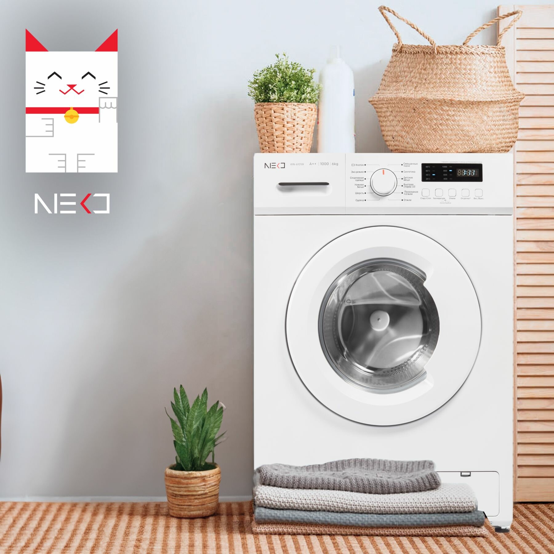 Отзывы на Стиральная машина NEKO WN-6101W А++, отсроченный старт, 6 кг, быстрая стирка, белый