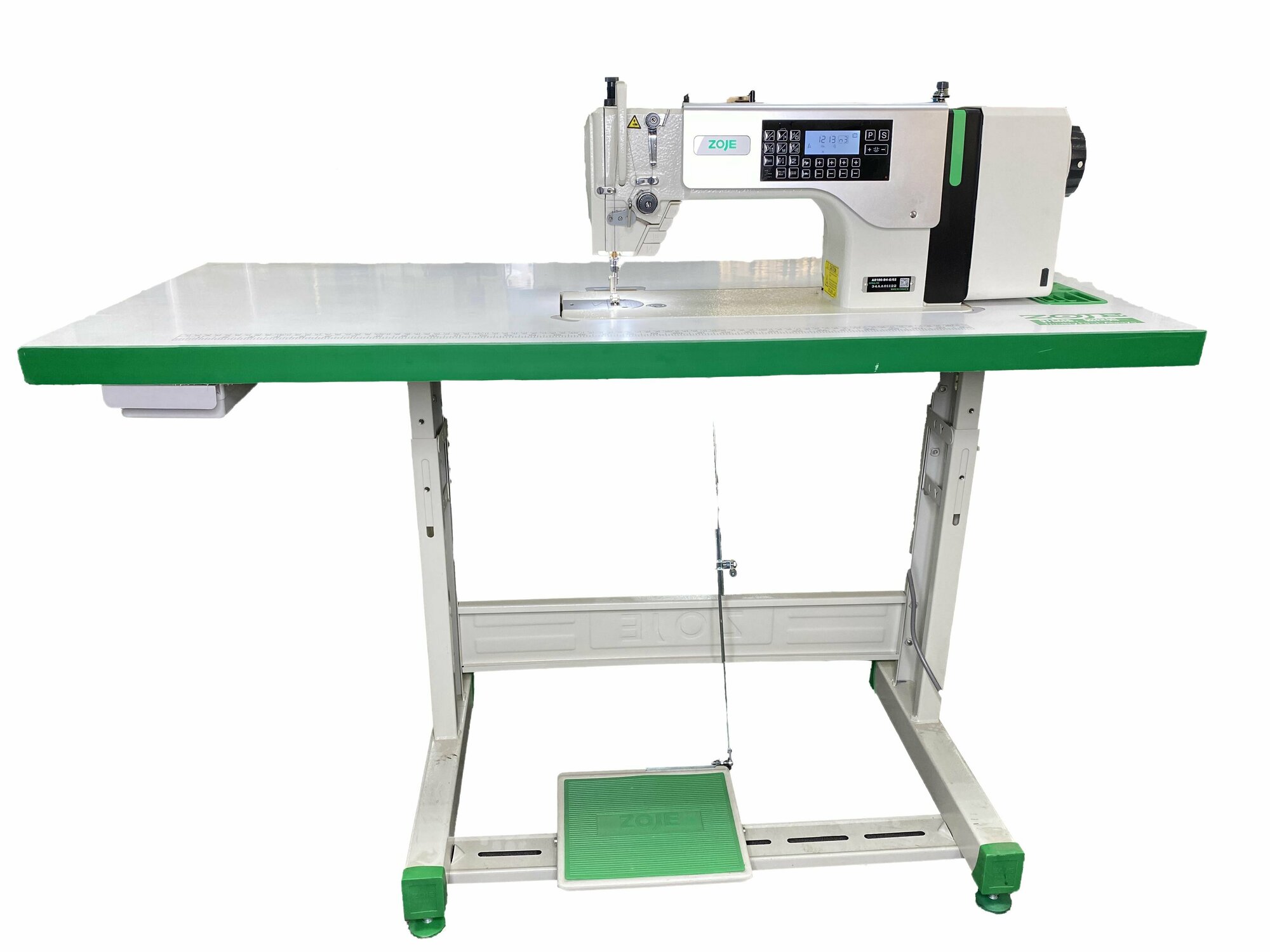 Прямострочная промышленная швейная машина челночного стежка ZOJE A8100-D4-G/02 с автоматическими функциями для пошива легких и средних тканей, комплект со столом информация: