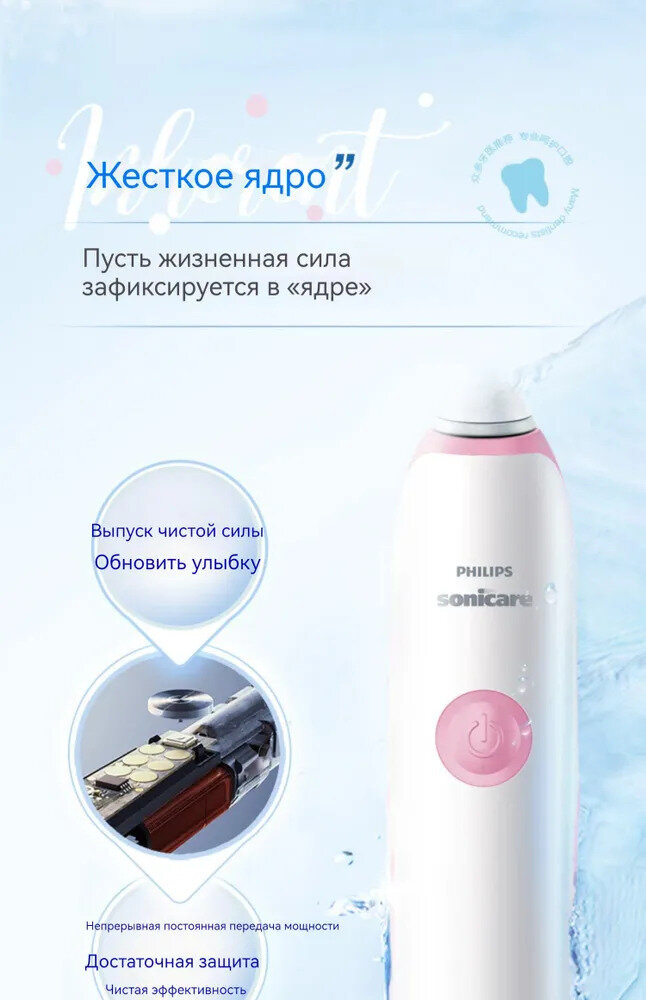 Электрическая зубная щетка филипса HX2421 розовая, ультразвуковая вибрация эффективно очищает зубы 5 245 ₽