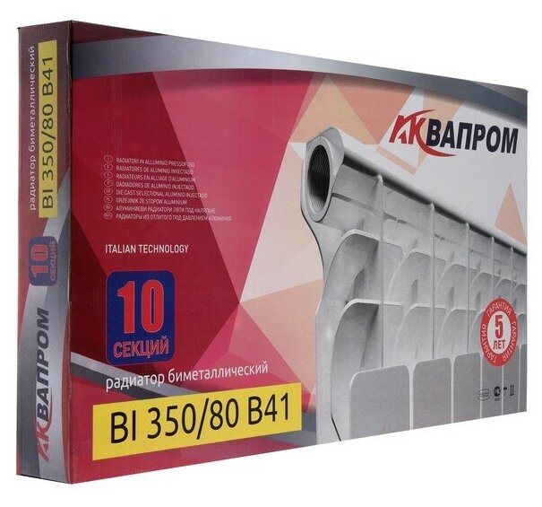 Радиатор отопления секционный биметаллический аквапром BI 350/80 B41 8 секций (синий квадрат) 00-000