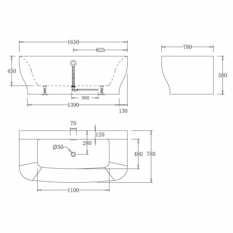 Акриловая ванна BelBagno 1650x780x590 BB74-1650-W0 информация: