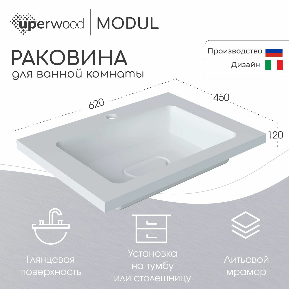 Раковина для ванной Uperwood Modul 62х45х12 см, белая глянцевая информация: