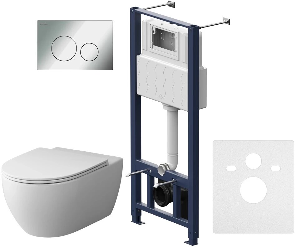 Система инсталляции BelBagno, унитаз подвесной BB1102CH с сиденьем BB1102SC с кнопкой смыва BB005-PR-CH