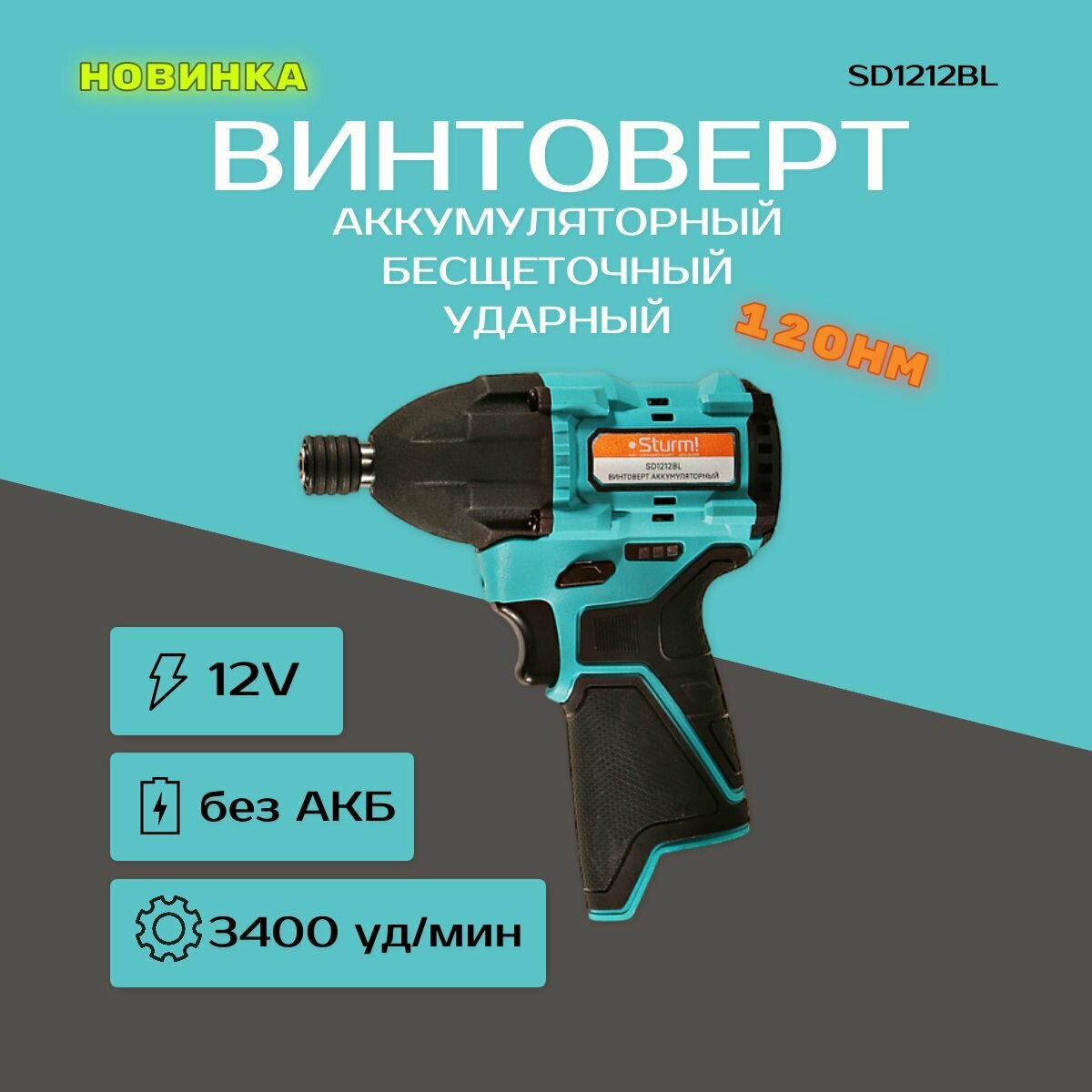 винтоверт ударный STURM SD1212BL 12В без АКБ и ЗУ бесщеточный информация: