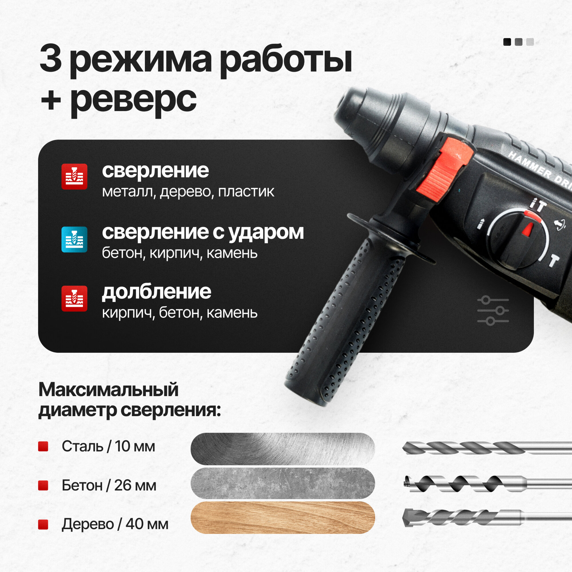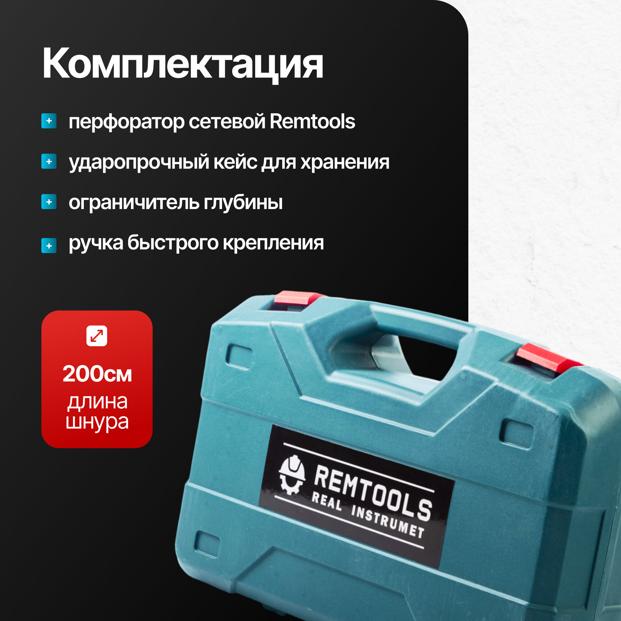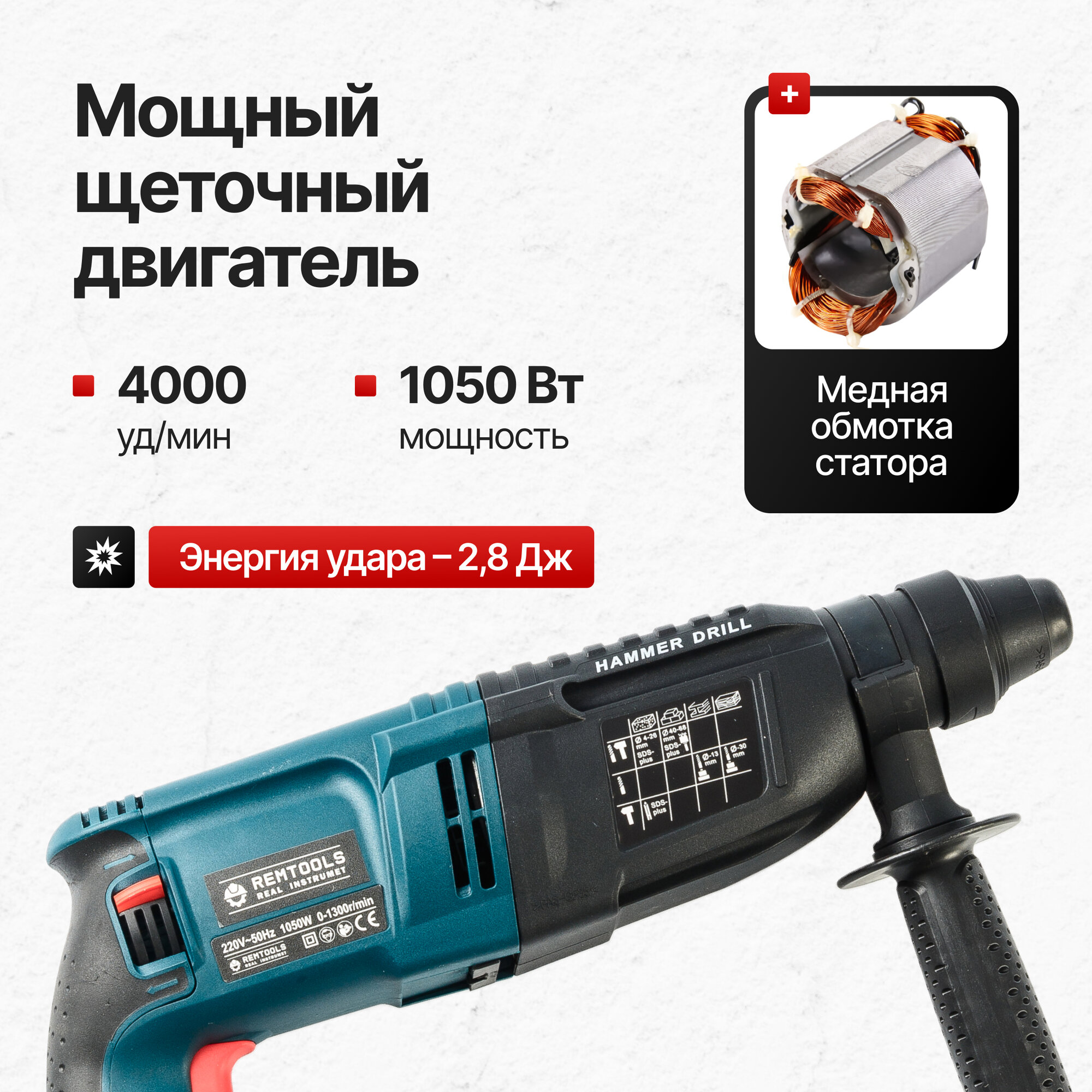 Перфоратор электрический Remtools, PRH-1050-26, SDS-Plus, 1050 Вт, 2.8 Дж, 3 + 1 режима работы / Перфоратор электрический профессиональный информация: