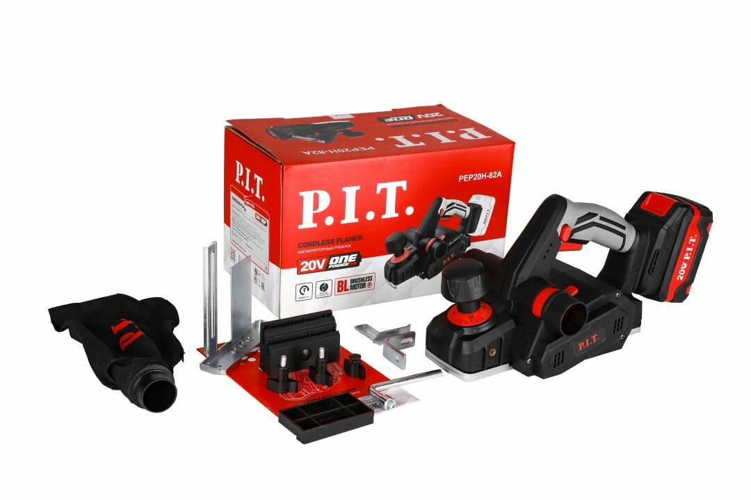 10 цен на Аккумуляторный бесщеточный рубанок P.I.T. PEP20H-82A SOLO (без АКБ и ЗУ) на системе OnePower (20В,16000 об/мин, нож 82мм, рег-ка 0-2мм)