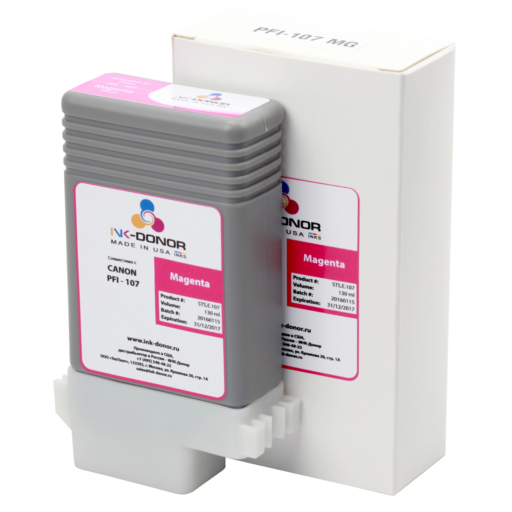 Картридж для Canon PFI-107M для плоттеров imagePROGRAF пурпурный, 130 мл Ink Donor информация: