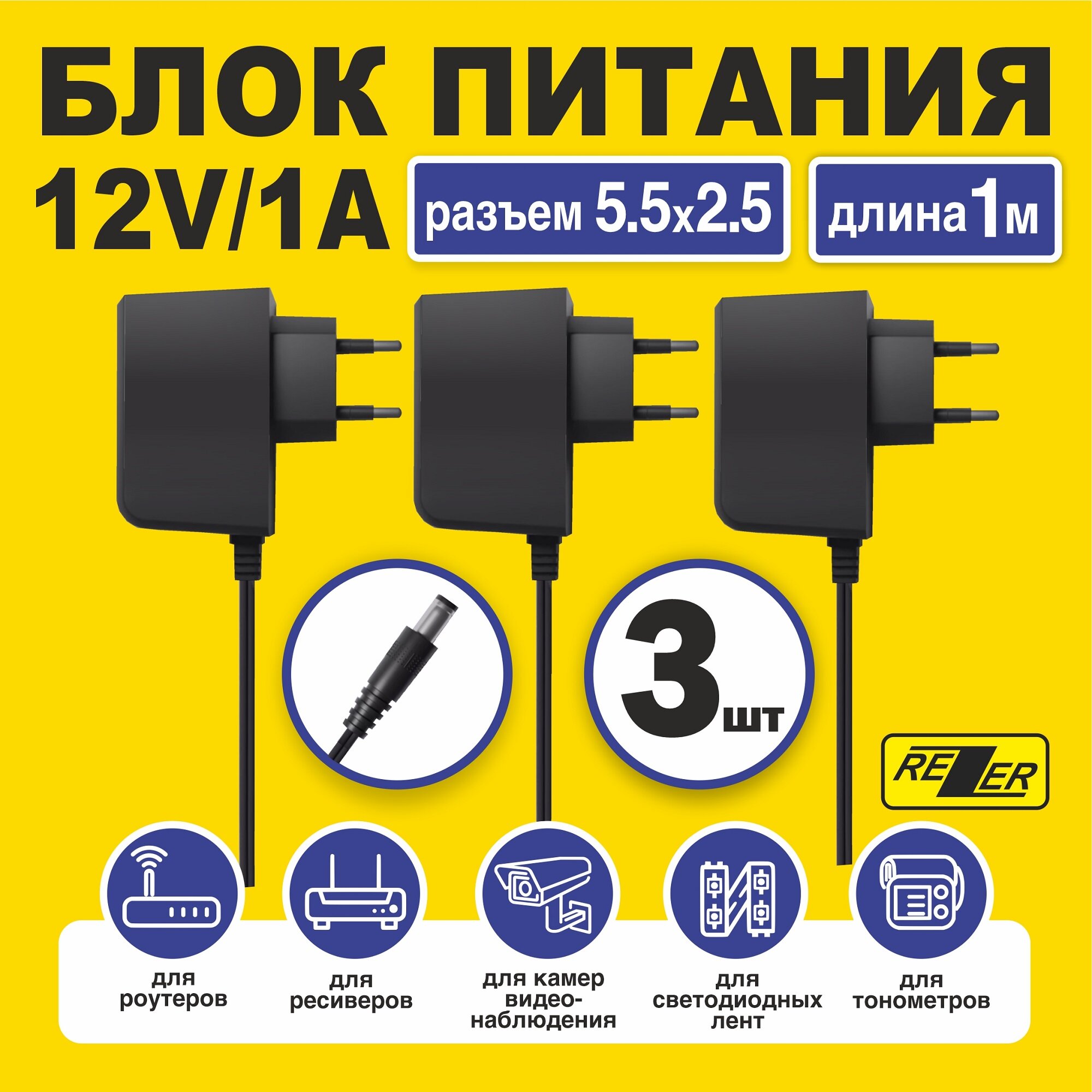 Отзывы на Блок питания 12В, 1А универсальный для бытовой техники, электрических бритв, диодных лент и др, штекер 5,5*2,5 мм, набор 3шт
