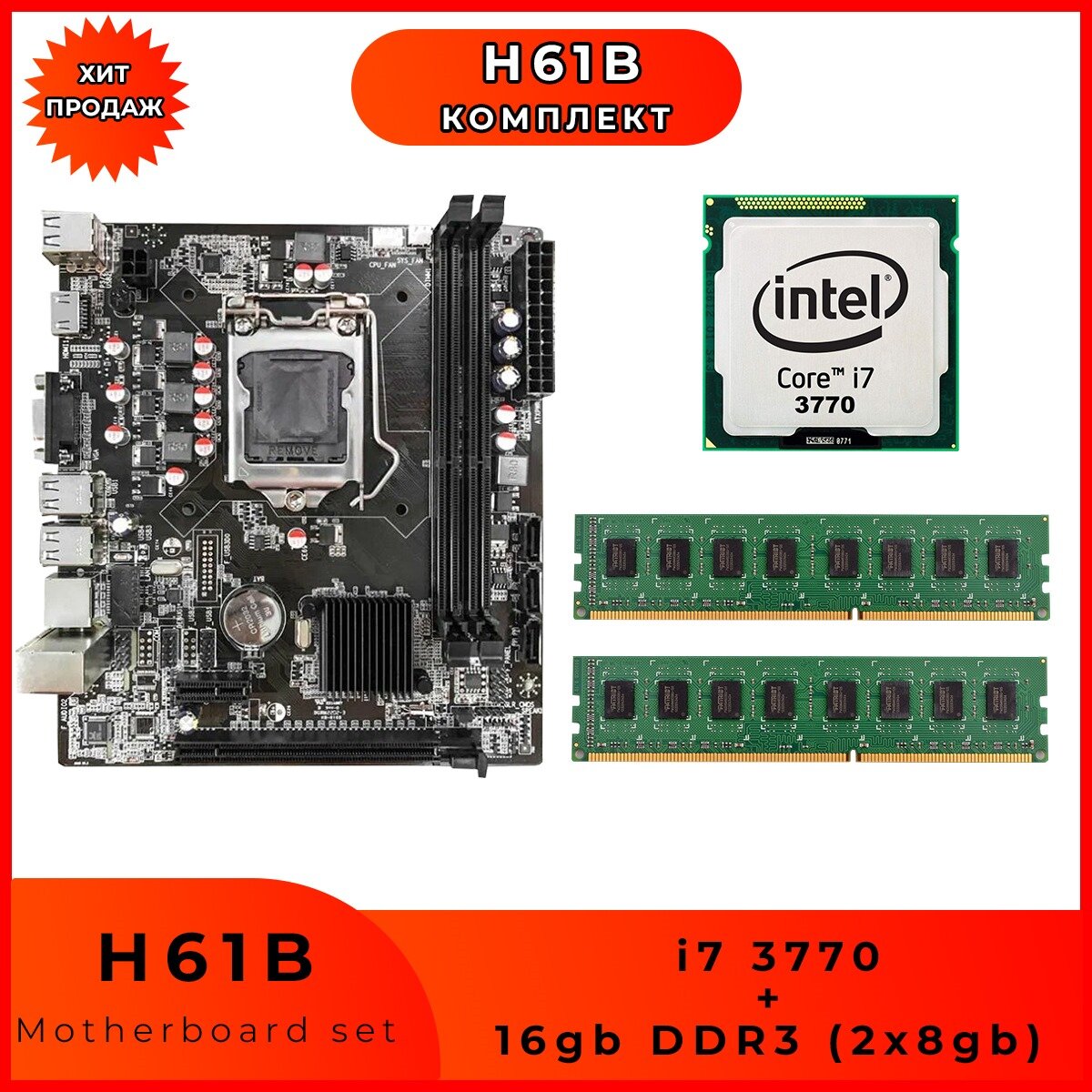 10 цен на Комплект материнская плата H61B LGA1155 + i7-3770 ( 4 ядра, 3.4 GHz, HDGraphics4000) + 16Gb DDR3 (2x8Gb)