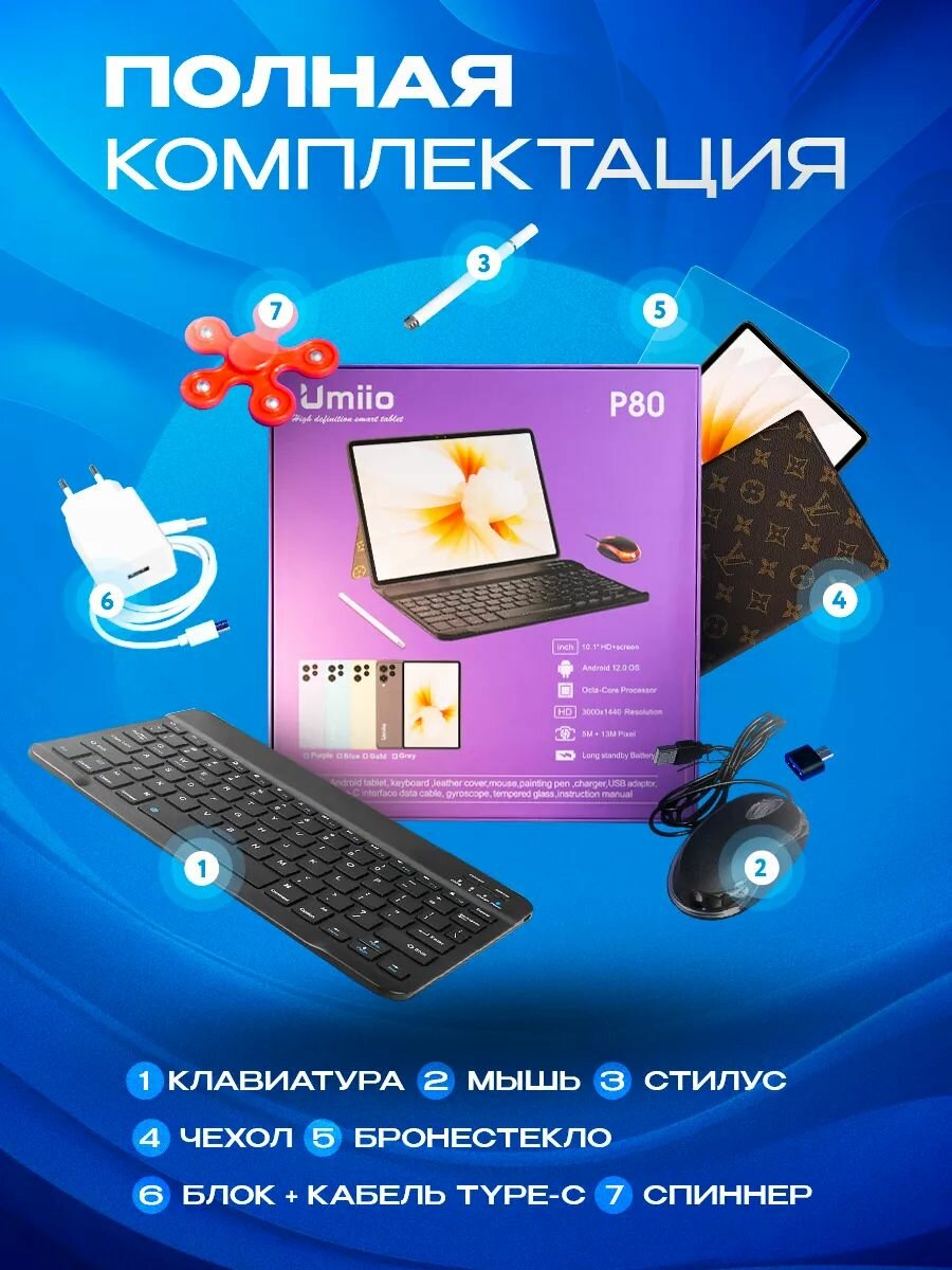 Планшет с клавиатурой Umiio Р60 Pad. 2 sim, 10.1" 6GB 128GB, планшет андроид 12 OS игровой со мышкой