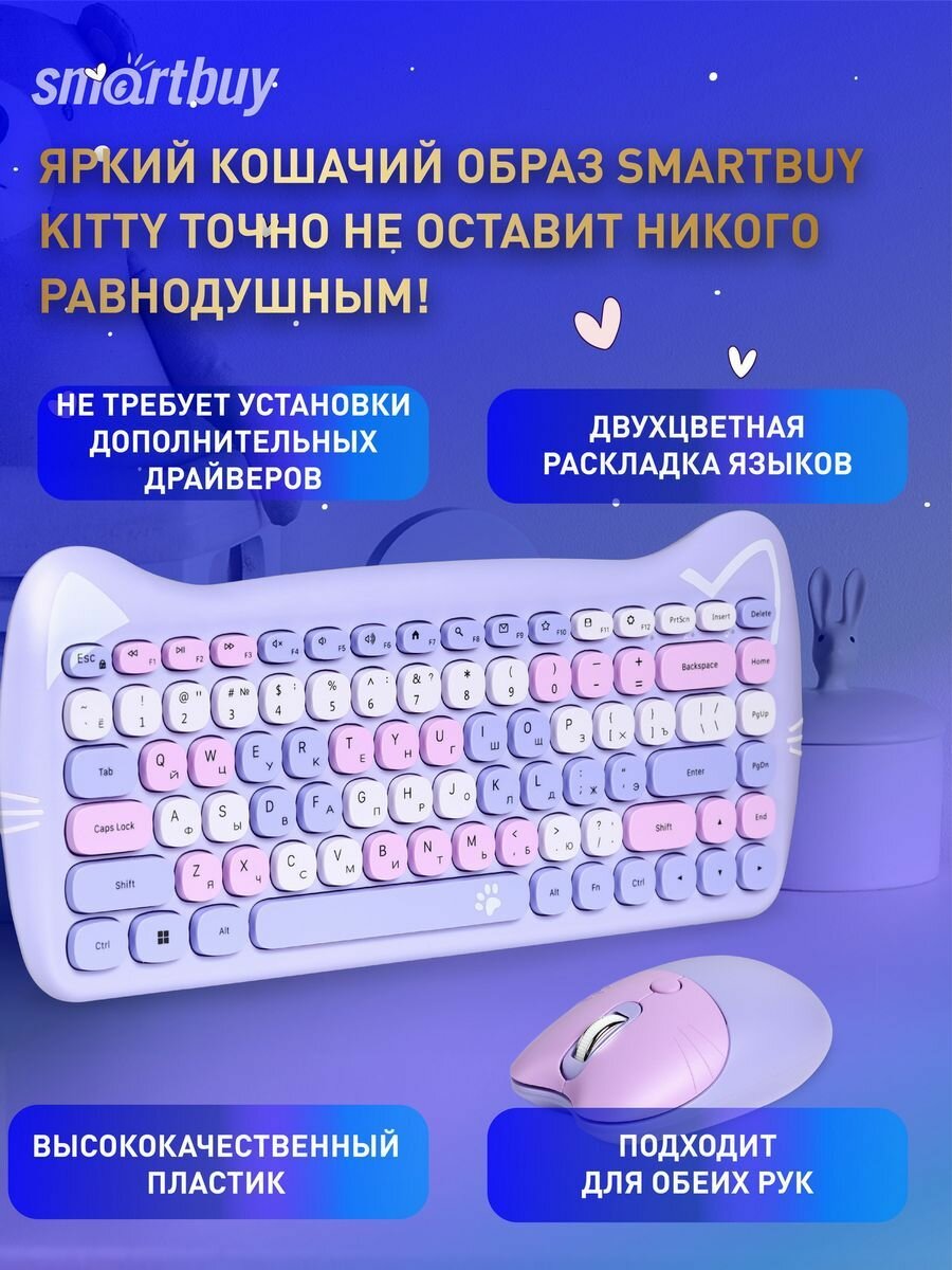 Клавиатура и мышка беспроводная компьютерная комплект Kitty информация: