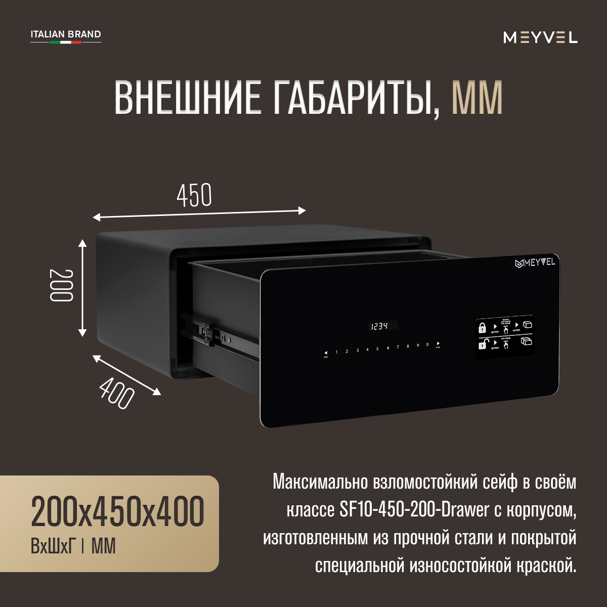 Сейф мебельный электронный Meyvel SF10-450-200-Drawer для денег и документов (встраиваемый тайник с кодовым замком для дома/офиса) информация: