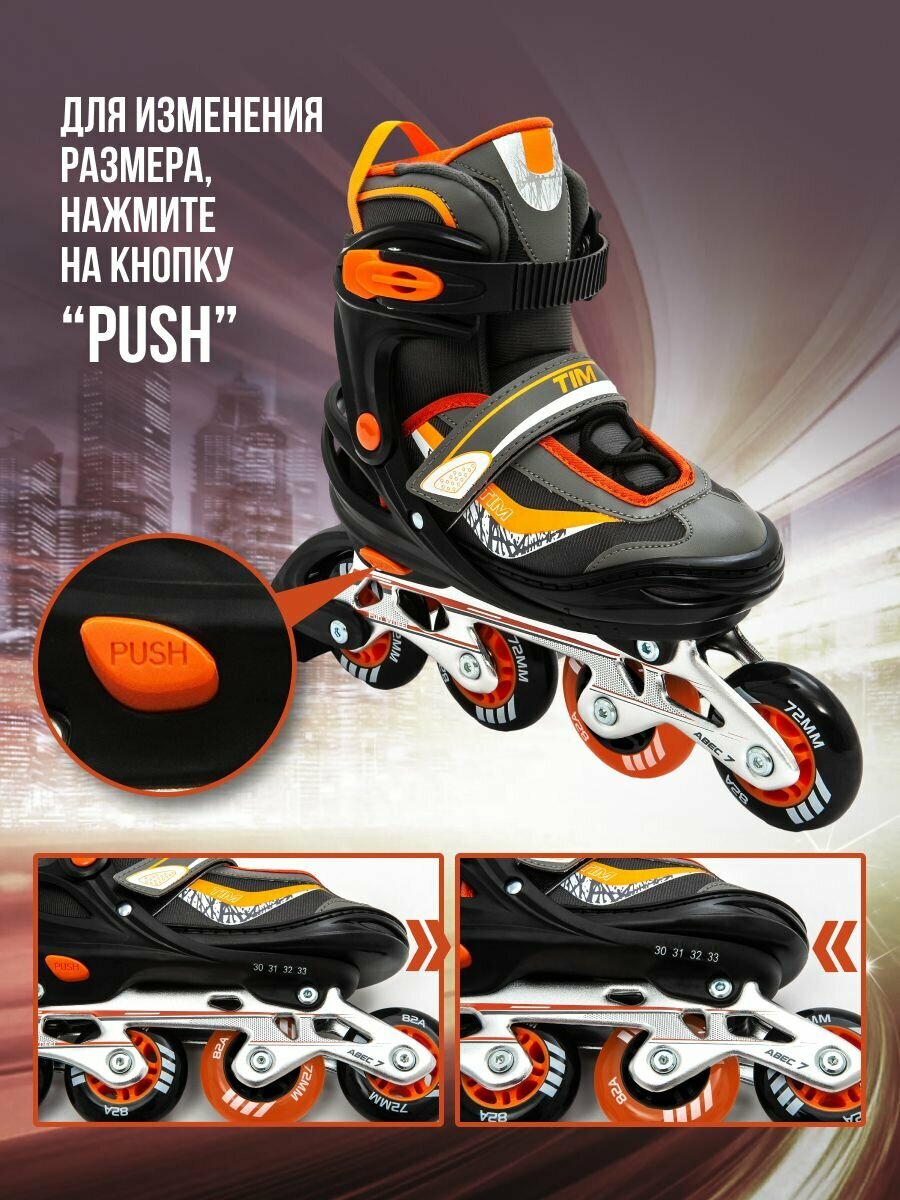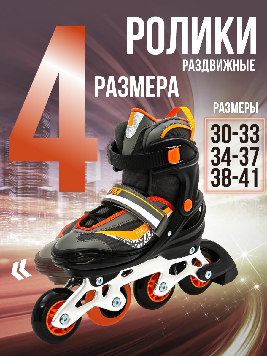 Ролики для девочки и мальчика раздвижные CALAMBUS TIM SUM черный/оранжевый размер 30-33 информация: