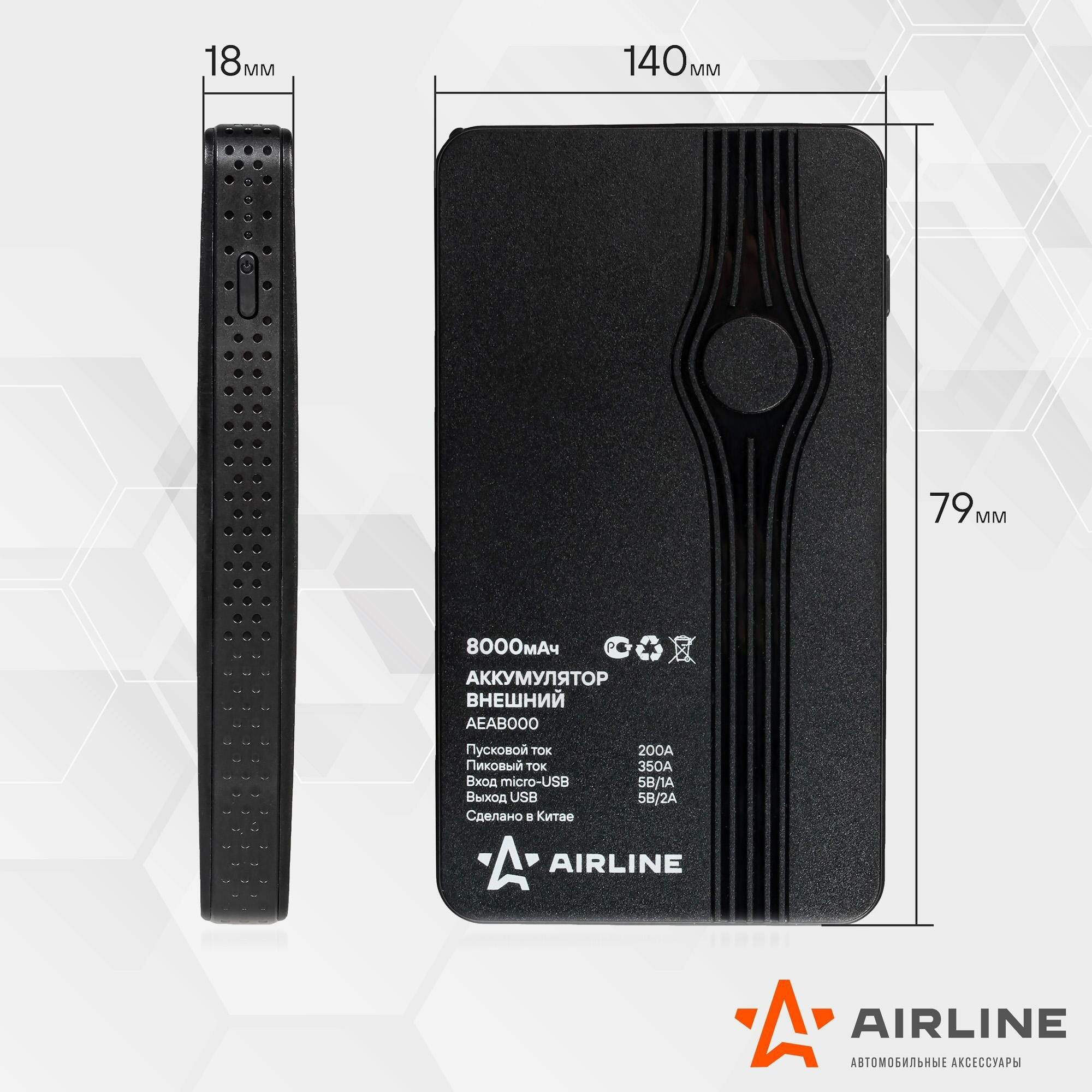 Зарядно-Пусковое Устройство Airline 8000Мач: Usb 5V/2A, Пуск Двс 350А Aeab000 AIRLINE арт. AEAB000