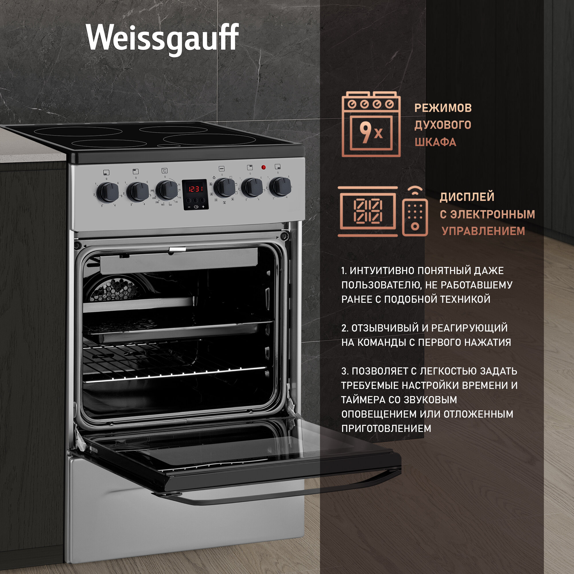 Отзывы на Электрическая плита Weissgauff WES 2V16 SE 3 года гарантии, Объем 50 литров, гриль, Конвекция, Термостат духового шкафа