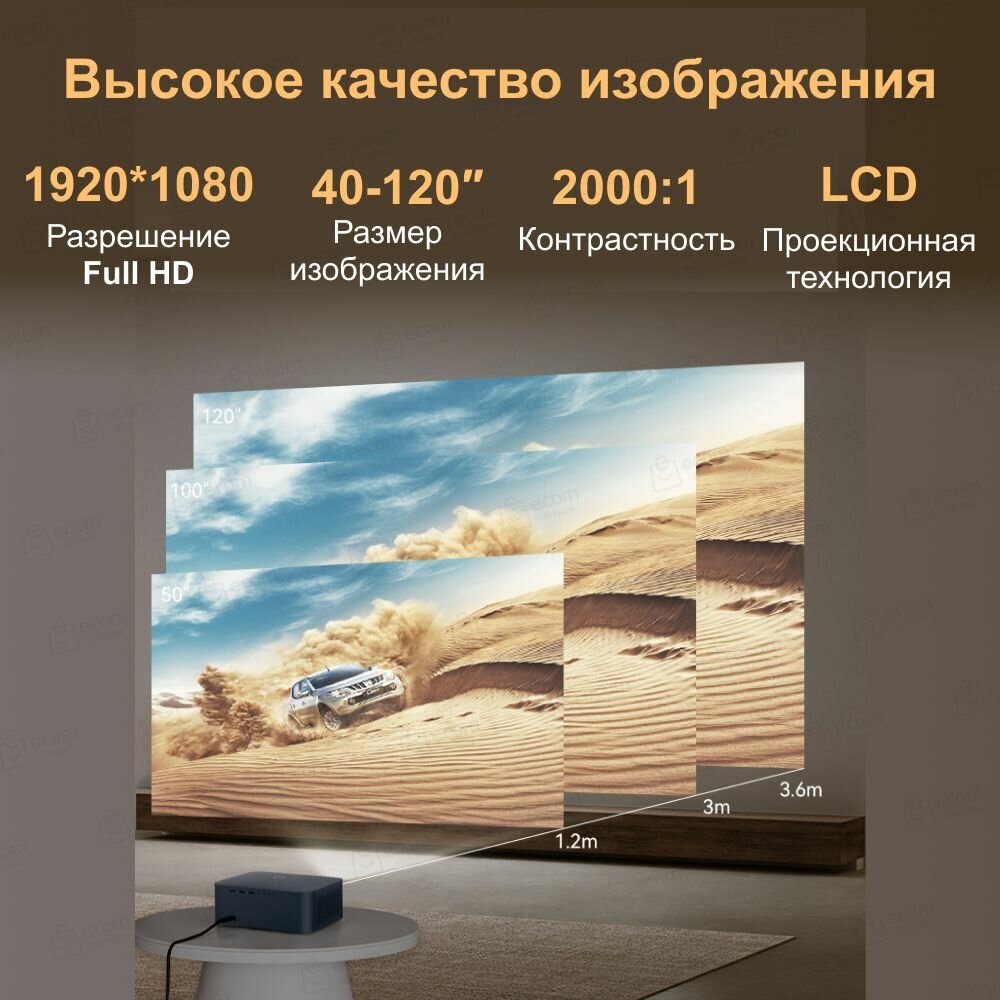 Мини проектор 4К с высоким разрешением 1920х1080 для фильмов и мультфильмов