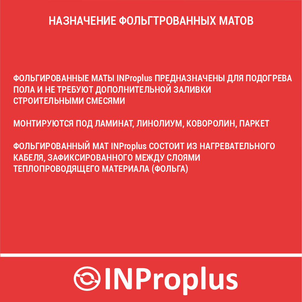Фольгированный, алюминиевый нагревательный мат INPro+, теплый пол 0,5 кв.м. - 75Вт 1 680 ₽