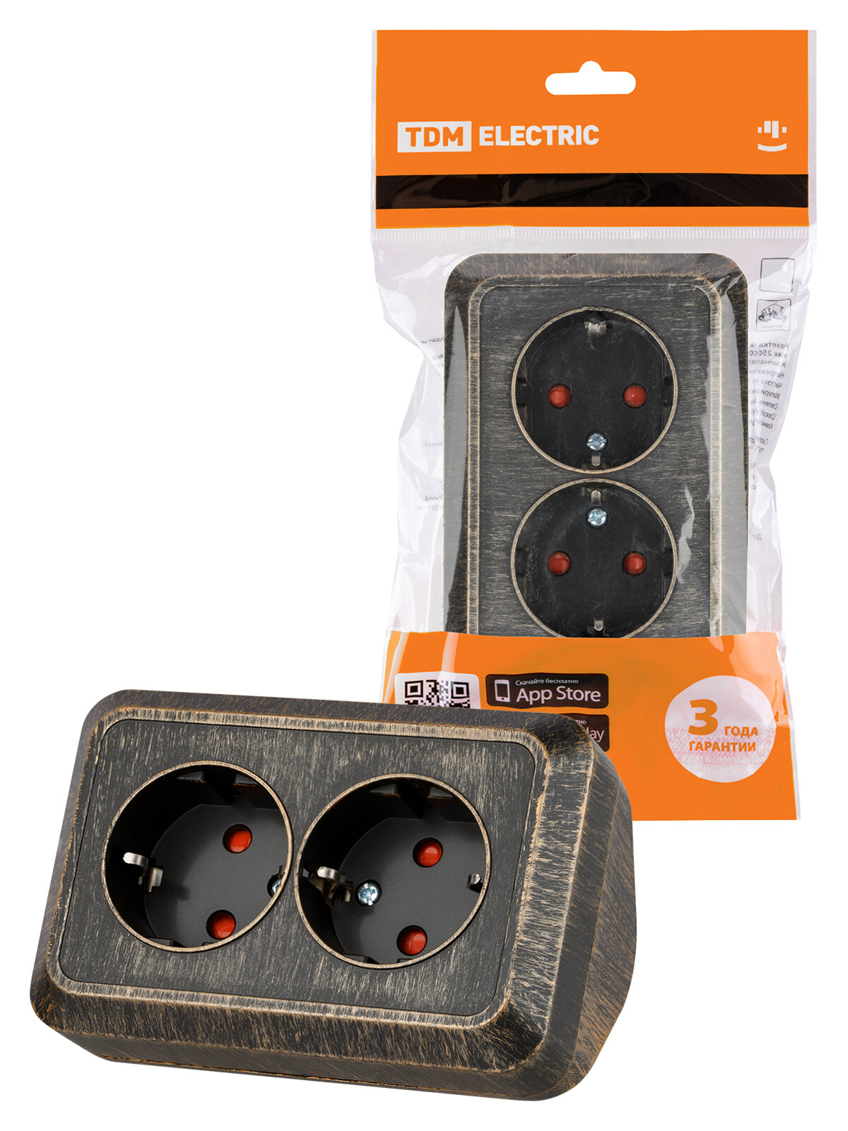 10 цен на Розетка угловая двойная 2П+3 открытой установки с з/ш IP20 250В 16А бронза "Ладога" TDM