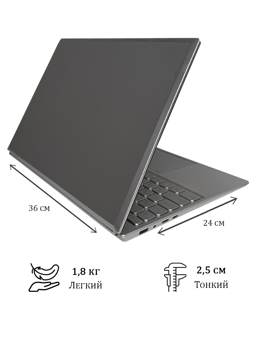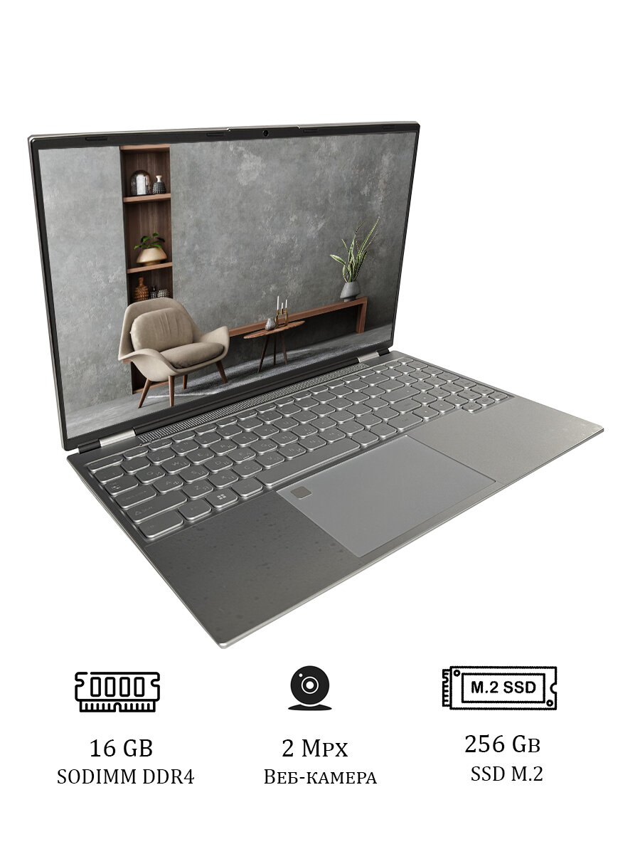 15.1" Ультрабук для работы и учебы, Notebook, RAM 16 ГБ, SSD 1ТБ, IPS Full HD 1920x1080, Intel N5095, Windows 11 pro, цвет Mid Gray, русская раскладка