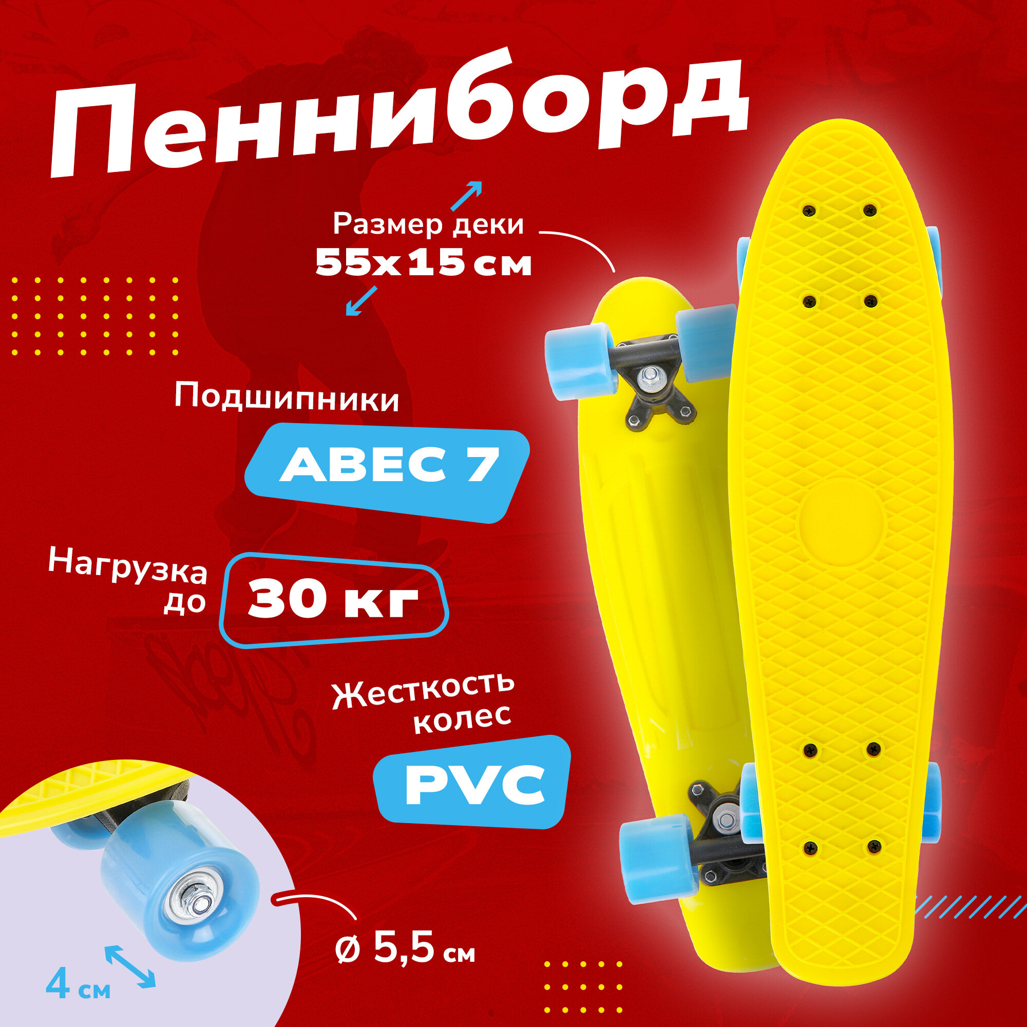 Скейтборд детский, пластик 55x15 см, PVC колеса, жёлтый, нагрузка до 30 кг 772 ₽