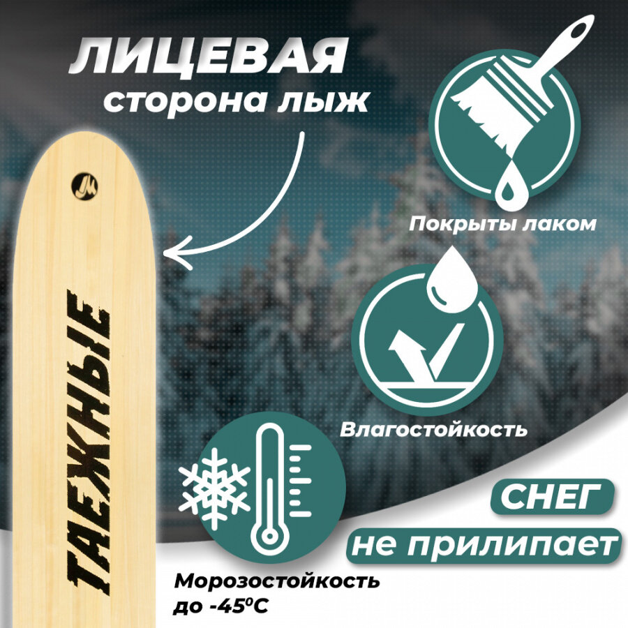 | Дополнительная информация | Таежные лыжи широкие и позволяют передвигаться по рыхлому снегу крупным охотникам с большой массой снаряжения |