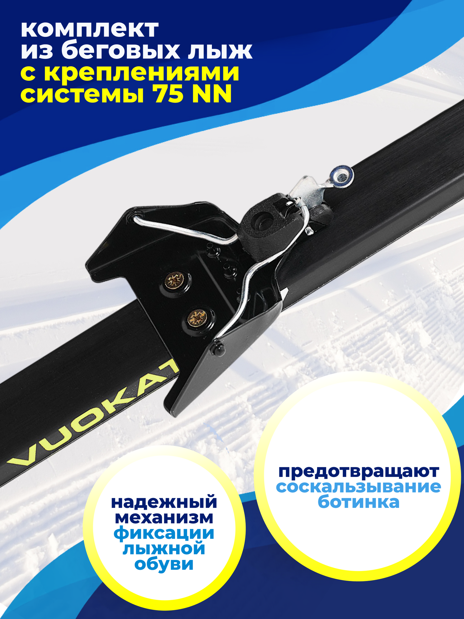 Лыжный комплект VUOKATTI / Беговые лыжи 185 см с креплением 75 мм Wax цвет Black/Yellow