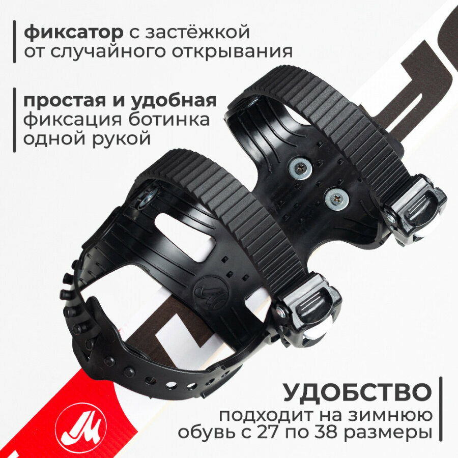 Лыжи подростковые беговые Маяк из дерево-пластика с универсальными креплениями, 160 см, красно-бело-черные информация: