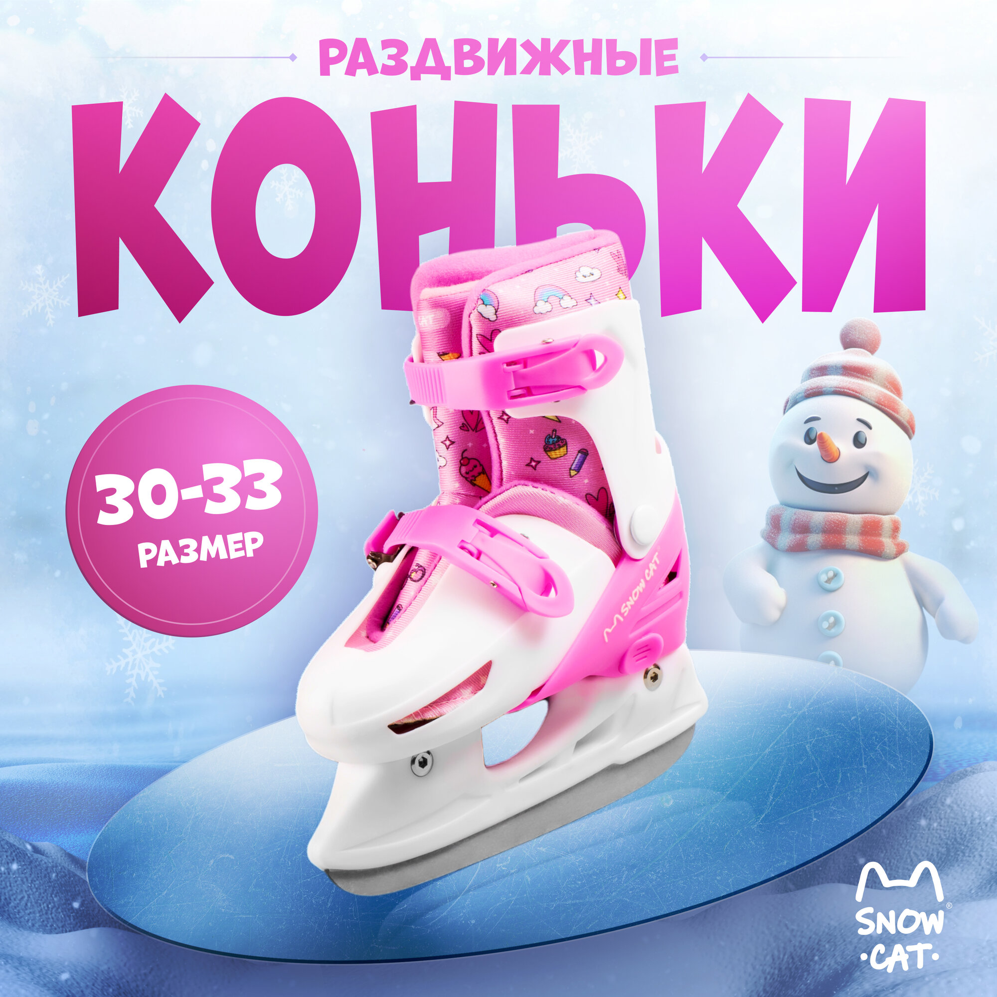 Коньки детские раздвижные Snow Cat, размер 30-33, лезвие из нержавеющей стали, подходят для начинающих и обучения, для прогулочного катания на льду, зимних видов спорта и подвижных спортивных игр 5 260 ₽