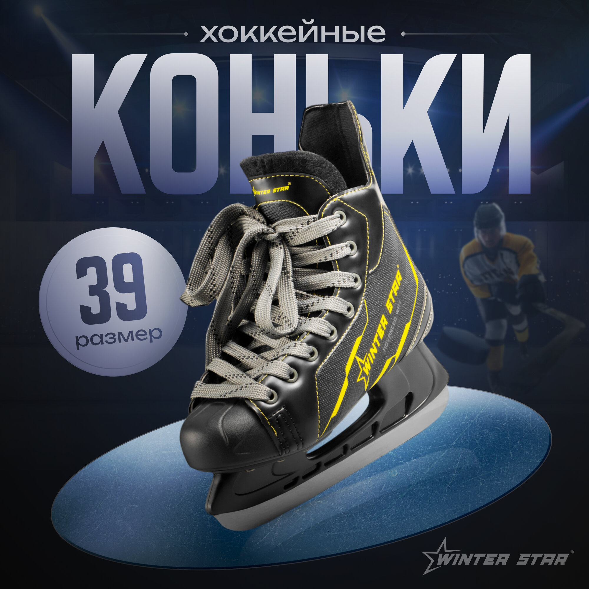Коньки хоккейные Winter Star Advanced Way, размер 39, цвет черный, желтый 6 200 ₽