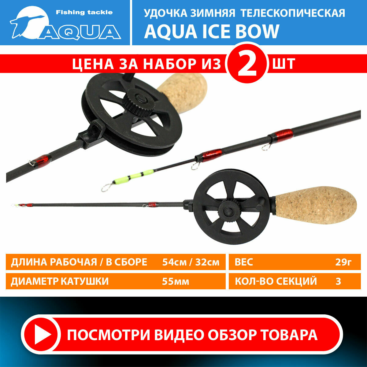 10 цен на Зимняя удочка AQUA Ice Bow с катушкой, телескопическая, длина 54 см, вес 29 гр, 2 штуки