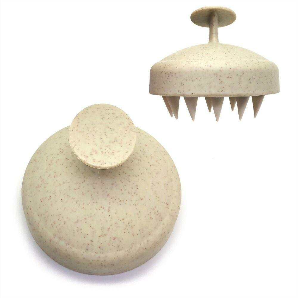 10 цен на Силиконовая массажная щетка для мытья головы и волос (бежевая) / массажер для головы и волос