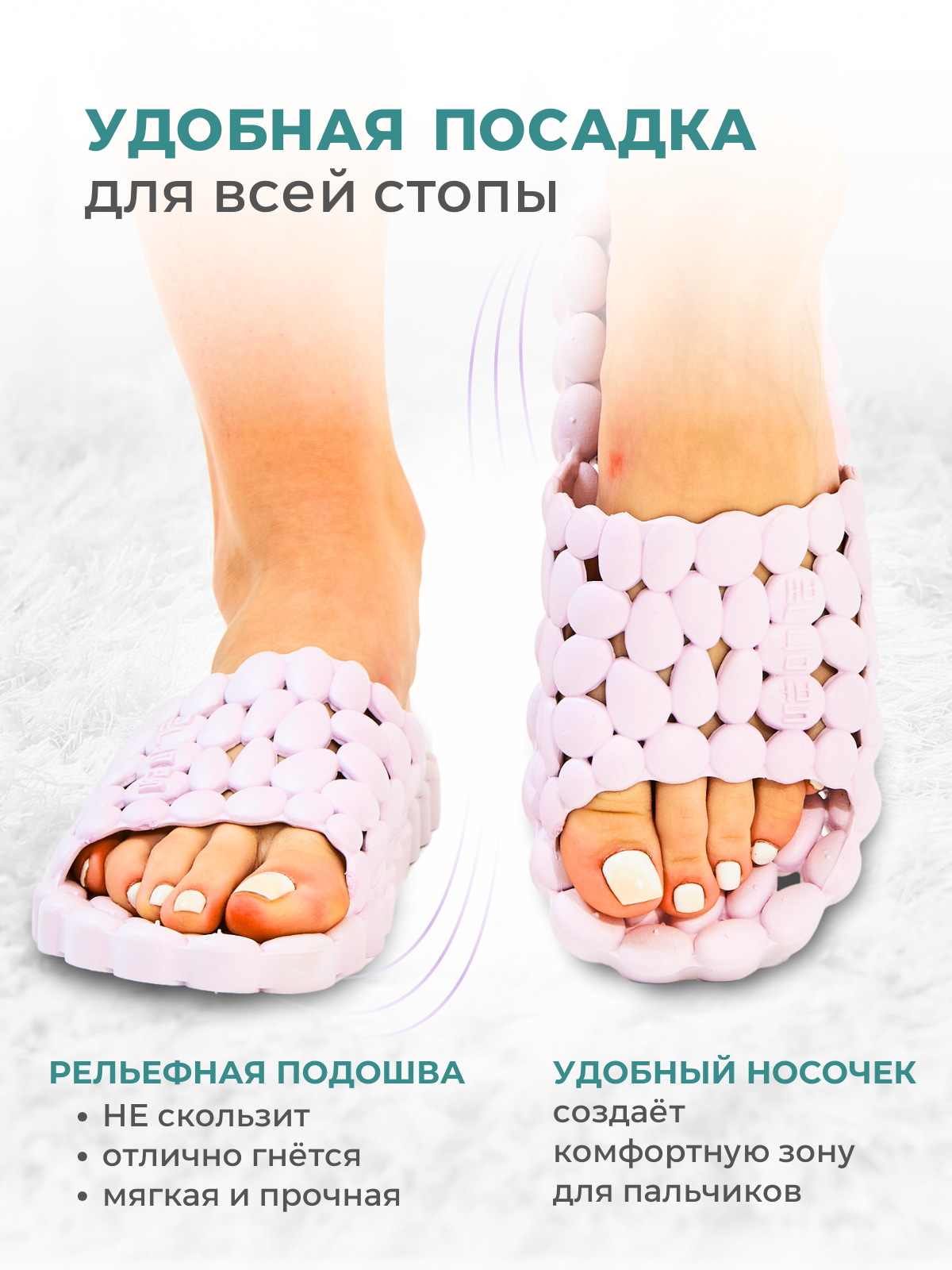 Отзывы на Массажные тапочки шиацу Галька, рефлекторные, сиреневые, р.36-37